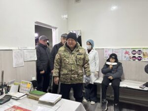 🔹 Таңкы рейддин алкагында шаар мэри Жеңишбек Токторбаев Манас-Ата аймактык башкармалыгында жайгашкан Ош шаардык №2 үй-бүлөлүк медицина борборунун, №2 Үй-бүлөлүк дарыгерлер тобунун (поликлиника) имаратынын абалы менен таанышты.
