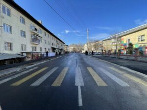 🔹Арзыкулов көчөсүнүн жалпы жолдун узундугу 300 метр, туурасы 10 метр болуп жол 2 тилкелүү болуп оңдолду. Бир тарабына жөө жүргүнчүлөр үчүн тротуар , жашыл аймак каралып, ирригациялык лотоктор орнотулду.