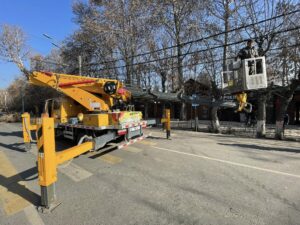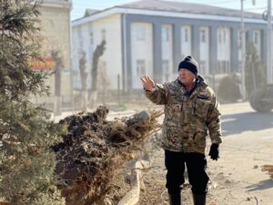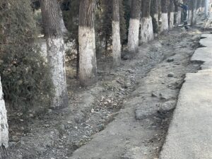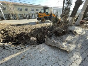 🔹 Ош шаарынын мэри Жеңишбек Токторбаев Алымбек датка көчөсүндө ирригациялык инфраструктураны өнүктүрүү максатында чирип, жараксыз абалга келген дарактарды алып салуу иштерин жеринен көрдү.