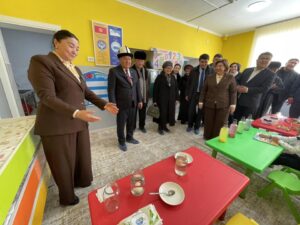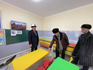 Сулайман-Тоо аймактык башкармалыгында “Айданек” балдар бакчасында түзүлгөн шарттар менен калаа башчысы Жеңишбек Токторбаев, шаардык кеңештин төрагасы Болот Баетов, жергиликтүү бийлик өкүлдөрү жана ата-энелер таанышып чыгышты.