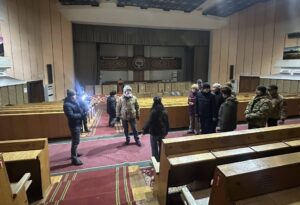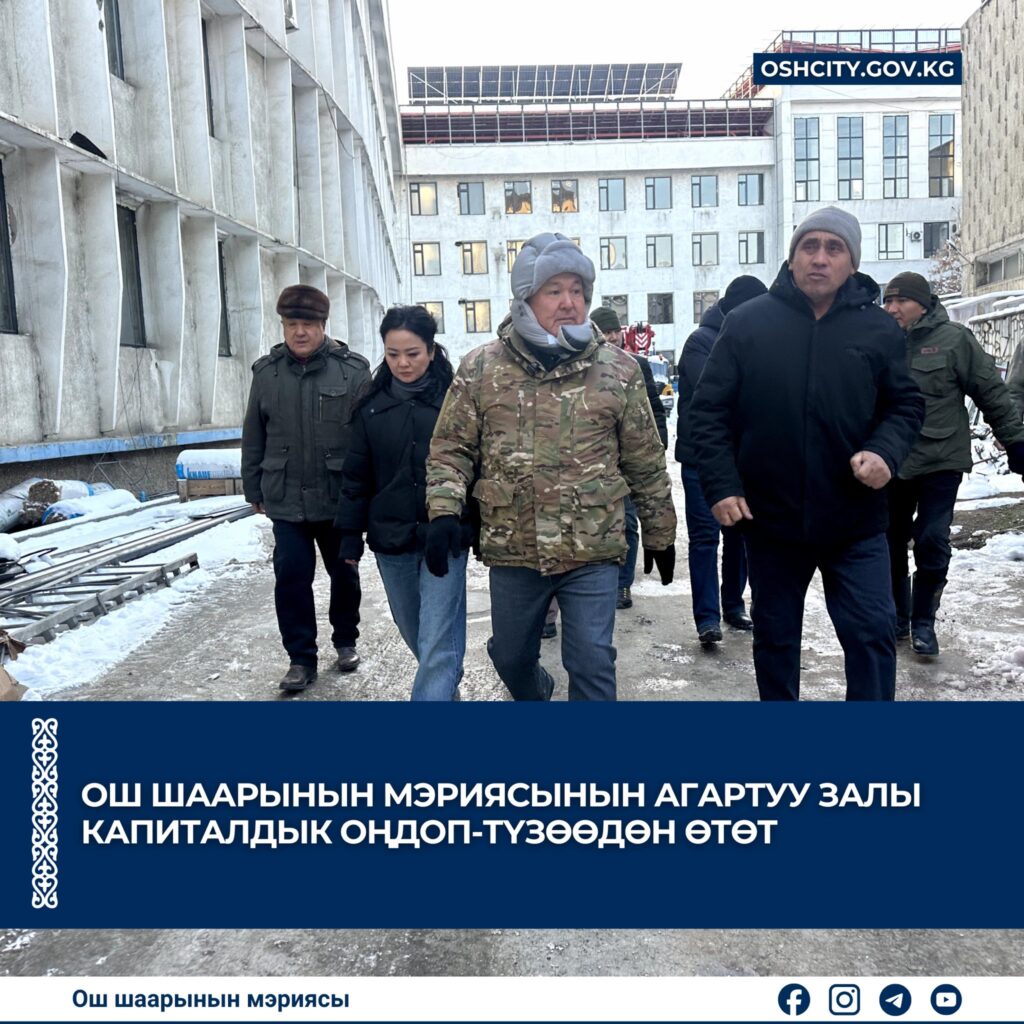 Ош шаарынын мэри Жеңишбек Токторбаев тийиштүү жетекчилер менен биргеликте Ош шаарынын мэриясынын жана Кыргыз Республикасынын Президентинин Ош облусундагы ыйгарым укуктуу өкүлүнүн агартуу залы жайгашкан имаратын кыдырып көрүп чыкты.