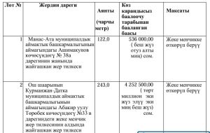 ✅ Көңүл буруңуздар: Аукцион өткөрүү күнү Ош шаарынын мэриясынын же Ош шамы гезитинин сайттарына жарыя чыккан күндөн баштап, 30 (отуз) күн мөөнөттөн өткөндөн кийин аукцион өткөрүлөт.