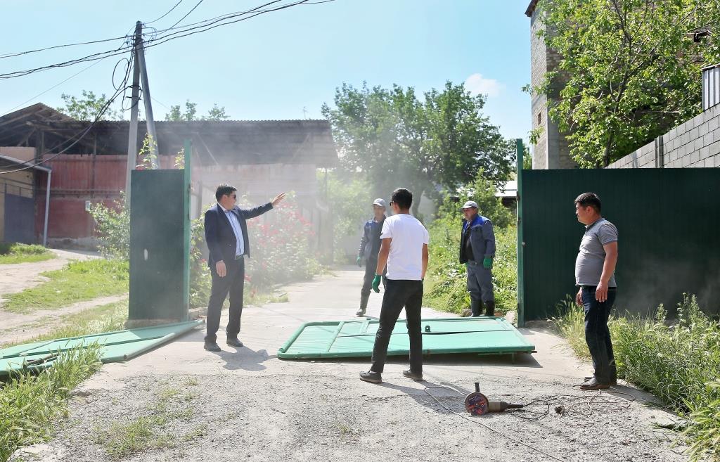 Ош шаарынын мэриясынын муниципалдык менчик башкармалыгы тарабынан Амир-Тимур көчөсүндөгү А.С.Пушкин атындагы мектептин аймагында жайгашкан мыйзамсыз курулуштарды алып салуу, мектептин аймагына каратылган үйлөрдүн дарбазасын тосуу иштери жүрүп жатат.