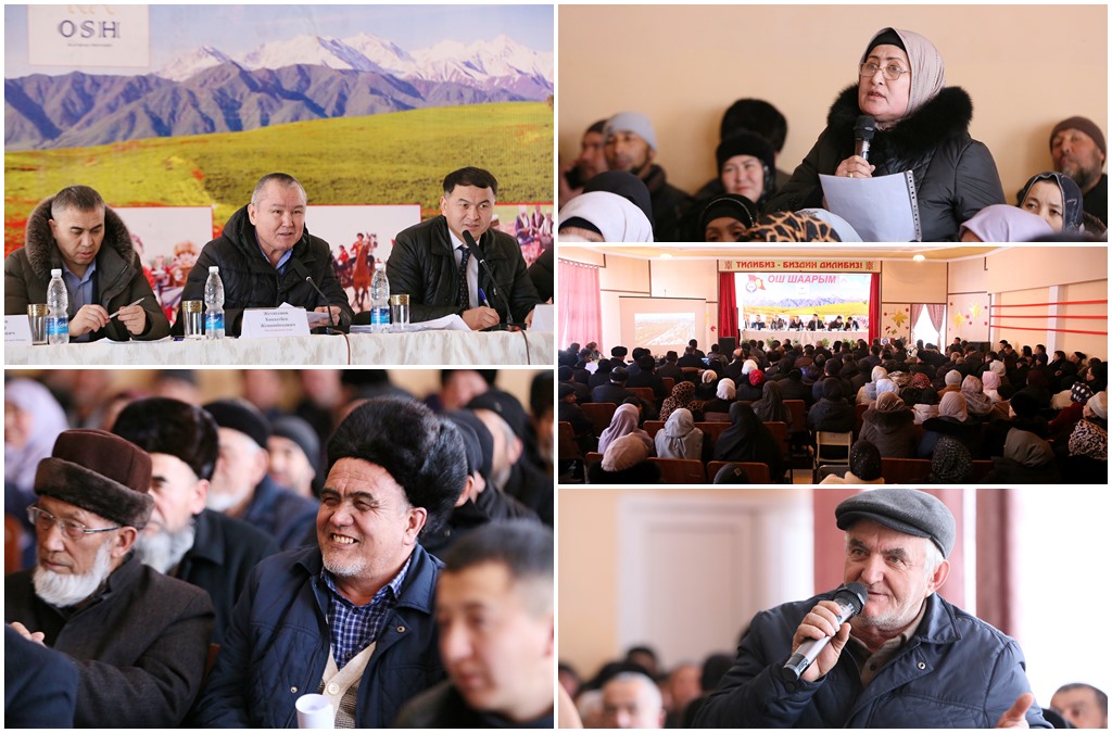 Бүгүн, Ош шаарынын мэри Бакытбек Жетигенов “Амир-Тимур” аймагынын жашоочулары менен жолугушту.Жолугушууда аймактык башкармалыктын башчысы тарабынан 2023-жылы, көрктөндүрүү, жашылдандыруу, түнкү жарыктандыруу жана башка чарбалык иштердин аткарылышы боюнча кыскача маалымат берилди.Жарандардар тарабынан негизинен жол, газ, тазалык, мамычаларды орнотуу, трансформатор, коммуналдык, социалдык, жер тилкеге, турак жайга документтерди даярдоо маселелери көтөрүлдү.Бакытбек Жетигенов жергиликтүү жашоочулардын кайрылууларын угуп, тиешелүү жоопторду берген соң, кээ бир маселелер менен жеринен таанышаарын билдирди.Ошондой эле айрым суроолор боюнча тиешелүү кызматтардын жетекчилерине аткаруу боюнча тапшырмаларды берди.
