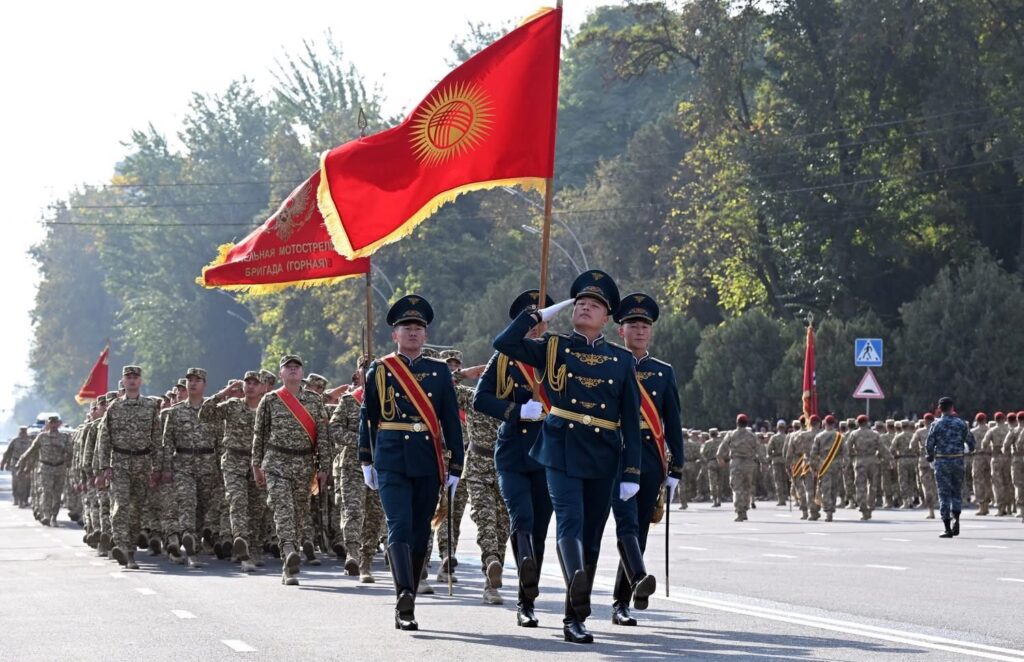 Ош шаарынын күнүндө Мамлекеттик туу көтөрүлүп, парад өттү