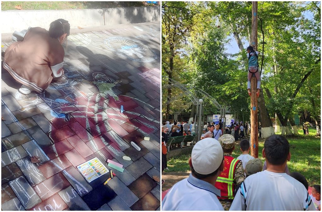 Т. Сатылганов атындагы сейил багында «Алтын туурум–Ата-Журтум» республикалык маданий кароо – сынакта алкагында «Күнөстүү Кыргызстан» балдардын асфальтка сүрөт тартуу сынагы өтүп, жаш балдар бор менен жерге сүрөт тартышты.