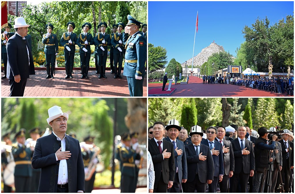 Бүгүн, 31-августта “Сулайман-Тоо” тарыхый мемориалдык комплексинин алдындагы Алымбек-Датка этнографиялык борборунда Кыргызстандын Көз карандысыздык күнүнө карата Кыргыз Республикасынын Президенти Садыр Жапаровдун катышуусунда Мамлекеттик Тууну көтөрүү аземи болду.