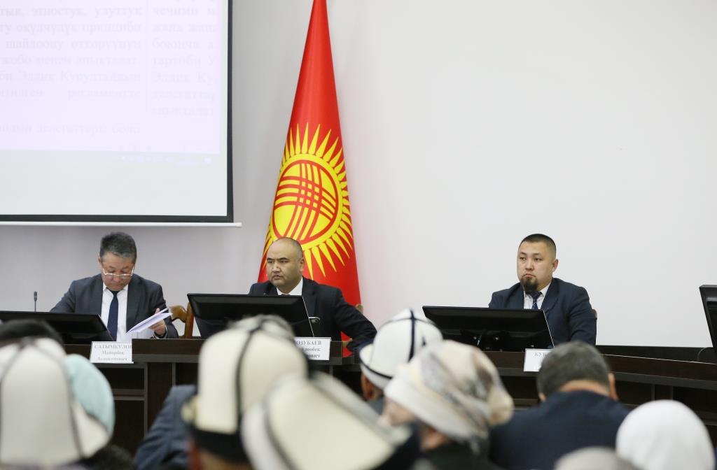 Соңунда суроо-жооп уюштурулуп, катышуучулар тарабынан Элдик Курултайды өткөрүү тартиби боюнча сунуштар берилип, пикир алмашуу болду.