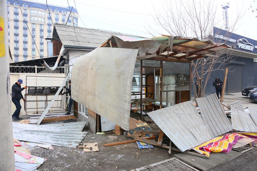 Бүгүн, 29-январда Ош шаарынын мэри Жеңишбек Токторбаевдин эрте мененки рейддик кыдыруусунда берилген протоколдук тапшырмасына ылыйык, Ош шаарынын мэриясынын муниципалдык менчик башкармалыгы тарабынан тротуарлардын боюнда жайгашкан тосмолорду, шаардын көркүн бузуп жаткан мыйзамсыз, убактылуу объектилерди бузуп, алып салуу, аны менен бирге жашылдандыруу жана көрктөндүрүү, жашыл аймактарды жаңылоо боюнча иштер жүргүзүлө баштады.