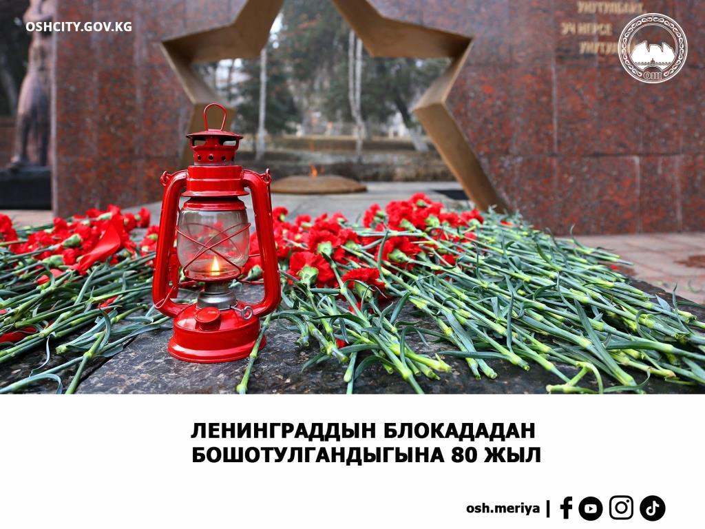 Ош шаарында блокададагы Ленинграддын бошотулганынын 80 жылдыгына карата бир катар иш-чаралар өткөрүлүп, ага Ош шаарынын мэриясынын, Орусиянын Ош шаарындагы Башкы консулдугунун, Ош шаарындагы Орус үйүнүн, Ооган согушунун ардагерлер кеңешинин, Кыргызстан элдеринин достугу ассамблеясынын жана башка коомдук уюмдардын өкүлдөрү ошондой эле мектеп окуучулары катышты.