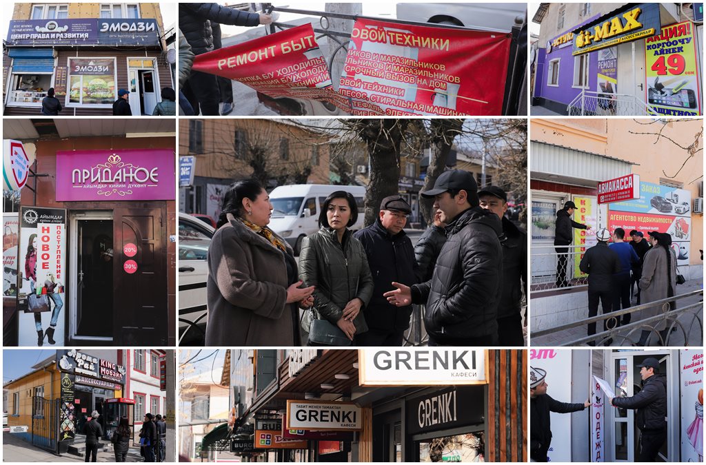 Ош шаарынын мэриясынын мамлекеттик тил комиссиясы тарабынан көчөлөрдө илинген жарнамалык маалыматтарда мамлекеттик тил мыйзамынын сакталышы жана аткарылышы боюнча рейддик иш-чаралар уланууда