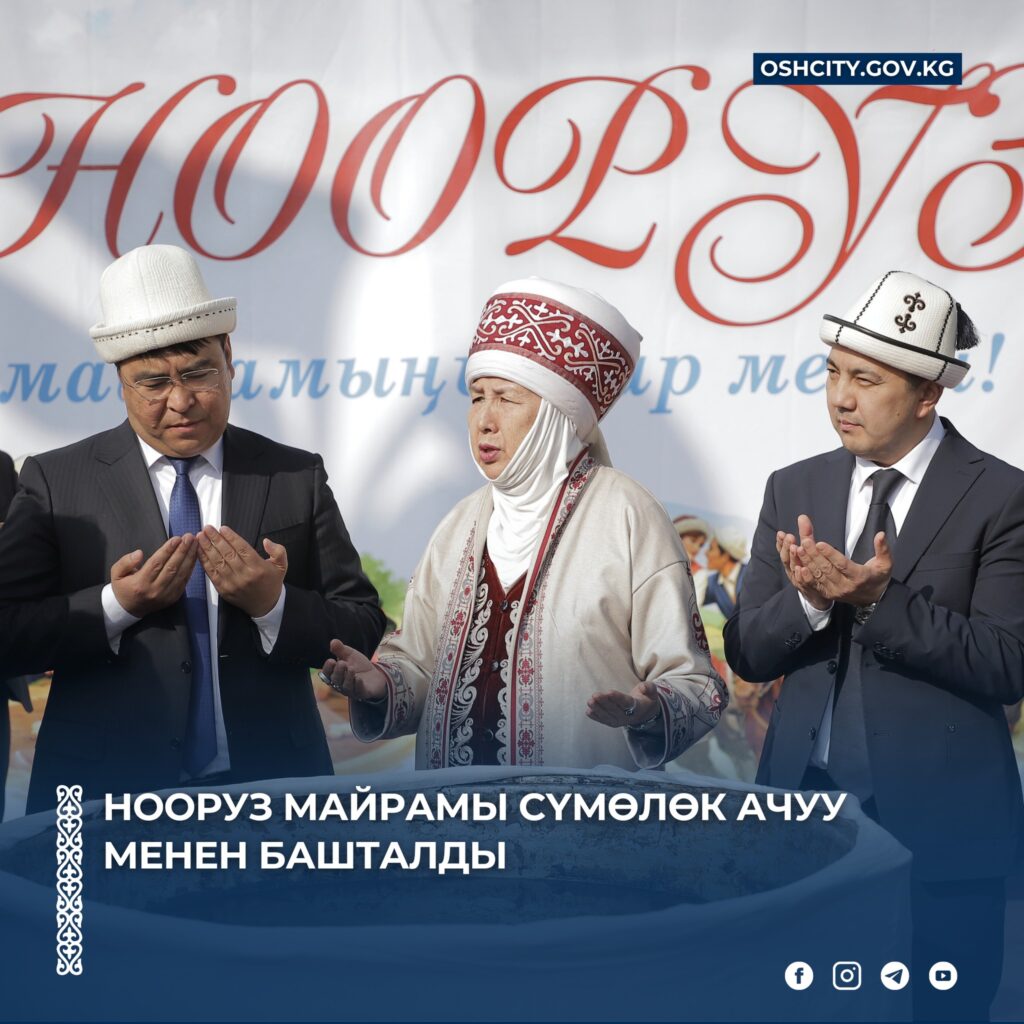 🔹 Бүгүн, 21-март Нооруз майрамы Барпы Алыкулов сейил багында даярдалган сүмөлөк ачуу аземи менен башталды. Ош шаарынын мэри Жанарбек Акаев, Жогорку Кеңештин Төрагасы Марлен Маматалиев жана облус башчысы Аманкан Кенжебаев энелердин ак батасы менен жакшы тилектерди айтып, ынтымак, береке жана молчулук каалоо менен сүмөлөктөн ооз тийишти.