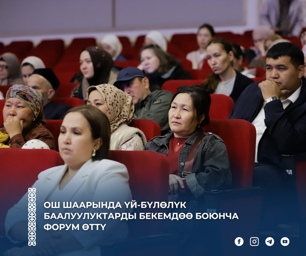 Ош шаарынын мэриясынын демилгеси менен үй-бүлөлүк баалуулуктарды бекемдөөгө багытталган “Тарбия башаты – үй-бүлөдөн башталат” аталышындагы форум өткөрүлдү. Форумга тиешелүү мамлекеттик мекемелердин өкүлдөрү, билим берүү тармагынын кызматкерлери, психологдор жана ата-энелер катышты.