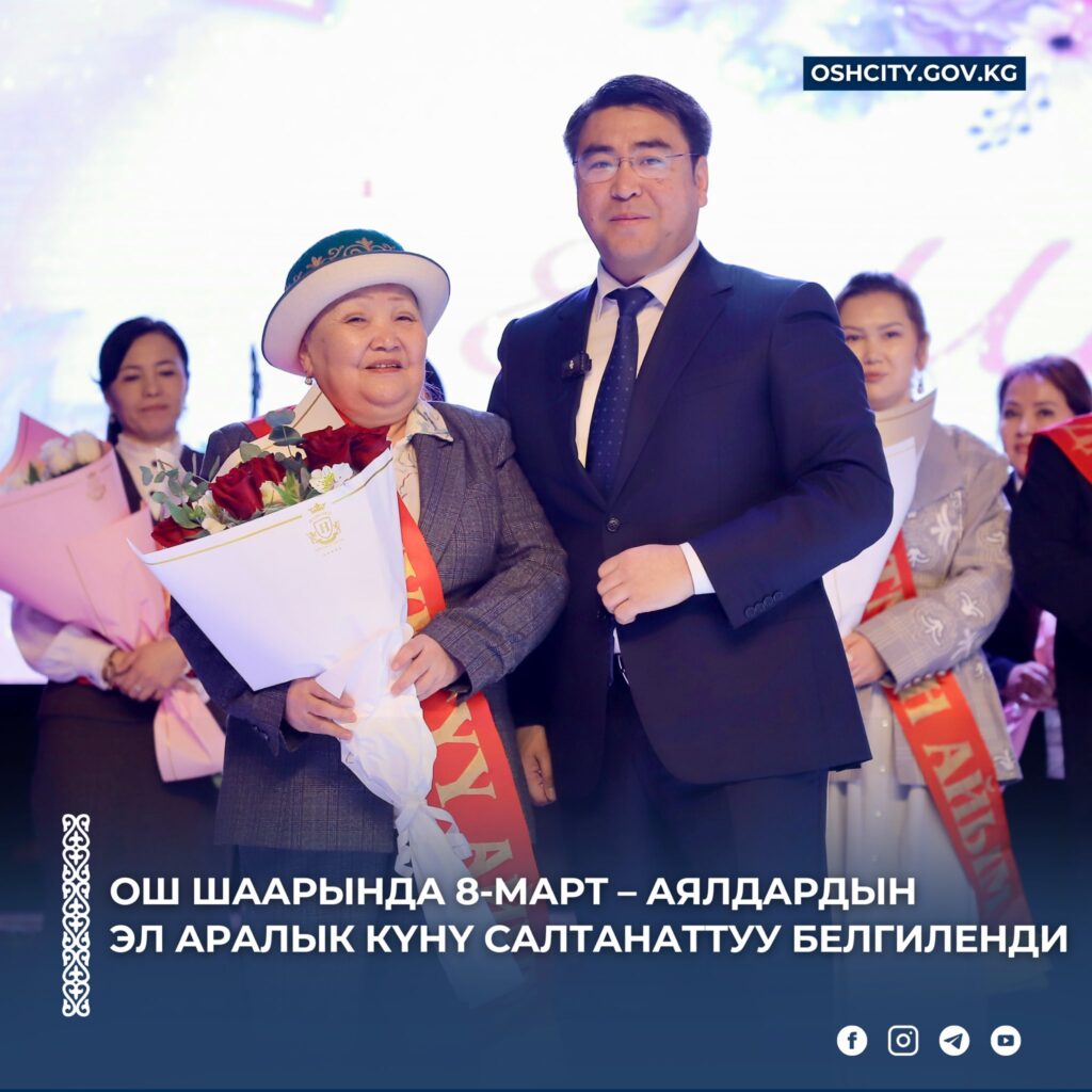 Ош улуттук драма театрында 8-март – Аялдардын эл аралык күнүнө карата салтанаттуу иш-чара өттү. Иш-чарага Ош шаарындагы бардык тармактардан 700 айым чакырылып, Ош шаарынын мэри Жанарбек Акаев үй-бүлөнүн куту, коомдун тиреги, аруулуктун символу болгон аялзатын майрамы менен куттуктады.