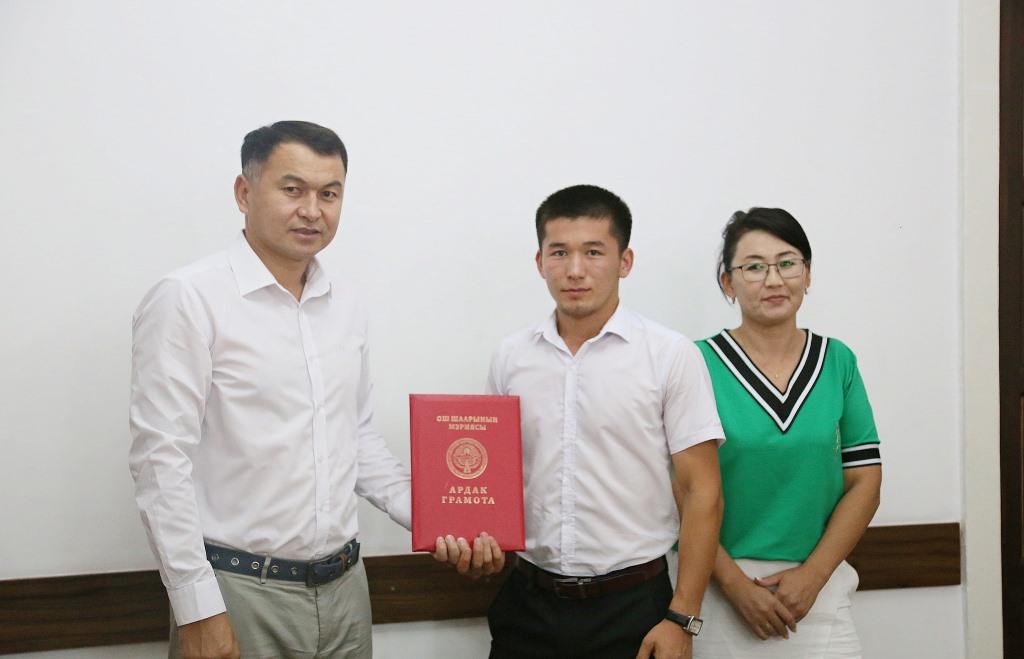 Шаардын курулуш тармагында эмгектенген кызматкерлерди Ош шаарынын мэринин орун басары Сонунбек Жунусбаев куттуктап, шаардын социалдык-экономикалык өнүгүүсүнө кошкон алгылыктуу салымдарын белгилеп, өз ишинде өзгөчөлөнгөн кызматкерлерге Ош шаарынын мэриясынын Ардак грамоталарын тапшырды.