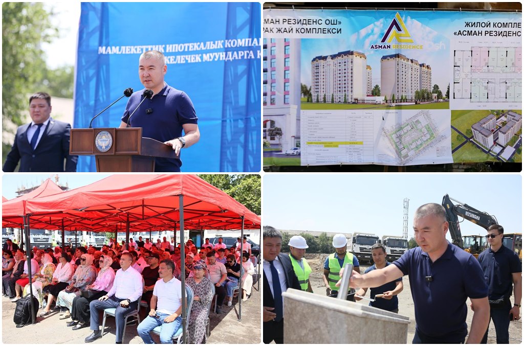 Бүгүн, Ош шаарынын Курманжан-Датка жана Сүйүмбаев көчөлөрүнүн кесилишинде Мамлекеттик ипотека программасынын алкагында жаңы “Асман резиденс №1 Ош” турак жай комплексинин курулушуна капсула салынды.