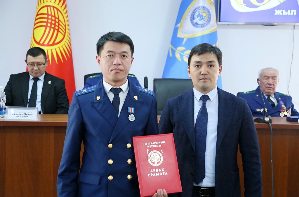 Иш-чаранын алкагында прокуратура органдарынын ардагерлери жана өзгөчөлөнгөн кызматкерлерге Ардак грамота, мааракелик төш белгилер жана акчалай сыйлыктар ыйгарылды.