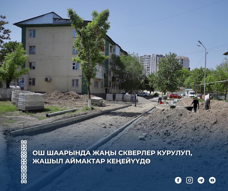 🔹 Ош шаарынын мэри Жанарбек Акаевдин тапшырмасына ылайык, Манас-Ата аймактык башкармалыгына караштуу И.Разаков көчөсүндө жаңы сквердин курулуш иштери активдүү жүрүп жатат.
