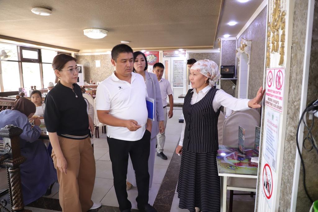 Бүгүн, Ош шаарынын А. Масалиев көчөсүндө жайгашкан ашканалардын, кафе-ресторандардын жарнамаларын, ичиндеги маалыматтарды, тамак-аш аталыштарын “Кыргыз Республикасынын мамлекеттик тили жөнүндө” конституциялык Мыйзамынын талаптарына ылайык келтирүү максатында жеринде туура жазылышы текшерилип, түшүндүрүү иштери жүргүзүлдү.