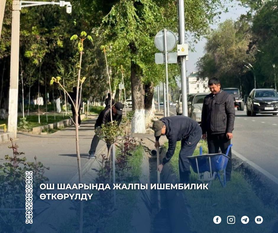 Ош шаарынын аймагында жалпы шембиликтин алкагында 140,8 гектар жер аянты тазаланып, 690 куб таштанды чыгарылды. Ошондой эле 21280 метр узундуктагы ирригациялык арыктар тазаланып, суу өткөрүү системалары иретке келтирилди.