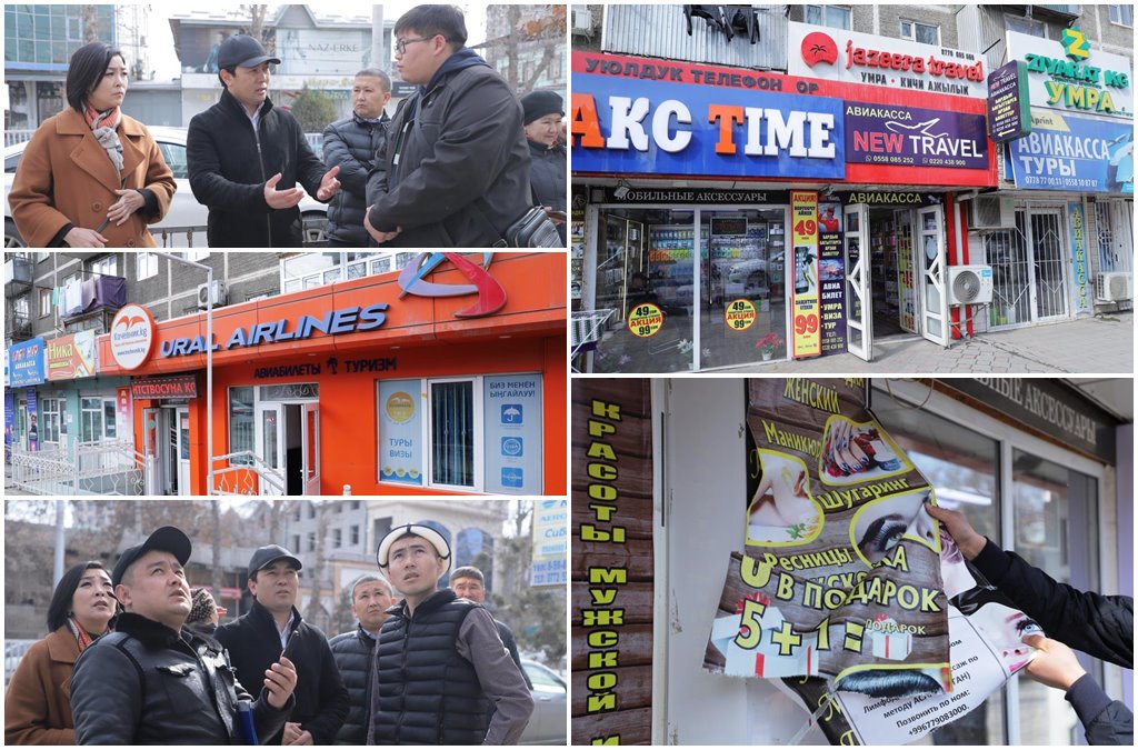 Ошондой эле буга чейин тиешелүү көрсөтмөлөр жана эскертүүлөр берилген, ченемдик укуктук актыларды бузган, мыйзам талабына жооп бербеген эскилиги жеткен жарнамалар алынды.