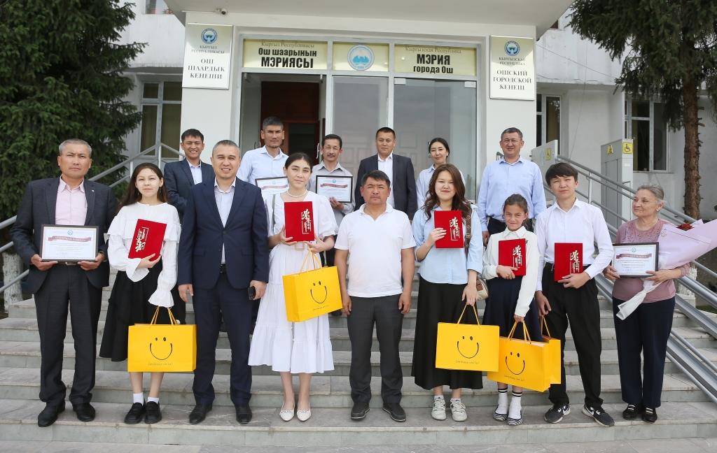 Бүгүн, Ош шаарынын мэриясында Кытай Эл Республикасынын Фошань шаарында өткөн жаштардын «Достугубузду жаркыраган келечекке тартабыз» эл аралык сүрөт сынагында байгелүү орундарга ээ болушкан Ош шаарындагы Гапар Айтиев атындагы атайын сүрөт мектебинин окуучулары сыйланды.