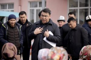 Ош шаарынын мэри Жанарбек Акаев Ош шаарынын Кызыл-Кыштак айылдык аймактык башкармалыгына караштуу Кызыл-Байрак айылына барып, жаңы мектеп куруу өтүнүчү менен кайрылган жергиликтүү тургундар менен жолукту.