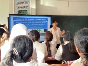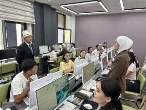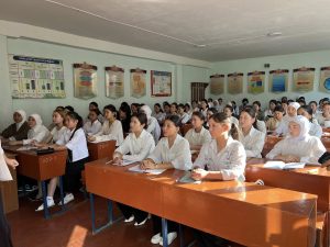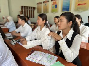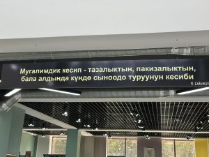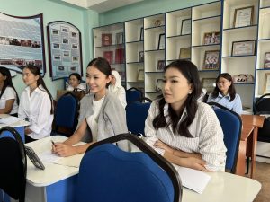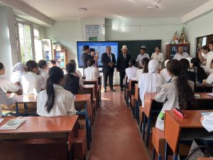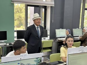🔶 Мында окуу жайдын шарттары, техникалык, материалдык базасы менен таанышып, студенттердин окууга катышуусун көрүп, лекцияларга катышууда.