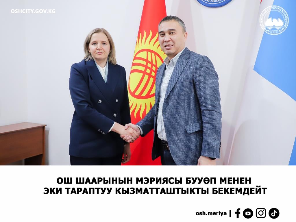 Бүгүн, Ош шаарынын мэринин орун басары Замир Юсупов менен Бириккен Улуттар Уюмунун Өнүктүрүү Программасынын Кыргыз Республикасындагы Туруктуу өкүлү Александра Соловьеванын жолугушуусу болду.