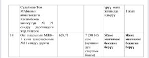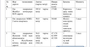 Аукцион өткөрүү менен Ош шаарынын мэриясынын сайтына жарыя
