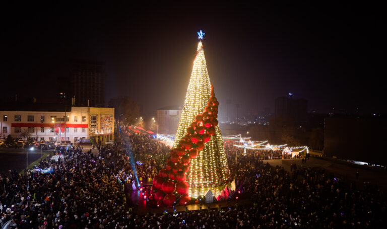 Ош шаарынын борбордук аянтындагы жаңы жылдык башкы балатынын оту салтанаттуу түрдө жандырылды. Балатынын бийиктиги 30 метрди түзүп, өзгөчө дизайнда жасалгаланды. 🔹Быйыл Ош шаары жаңы жыл