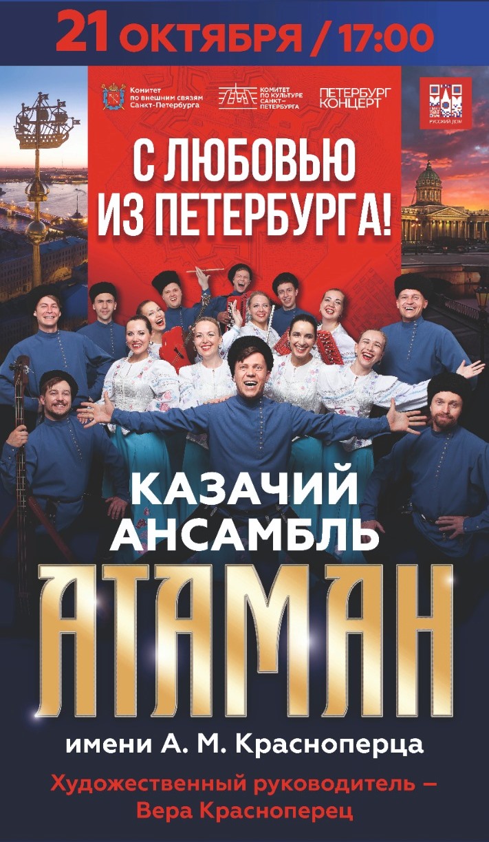 21-октябрда саат 17:00дө Бабур театрында Санкт-Петербург шаарынын А. М. Красноперец атындагы “Атаман” чыгармачыл тобунун концерти өтөт. Кирүү акысыз!