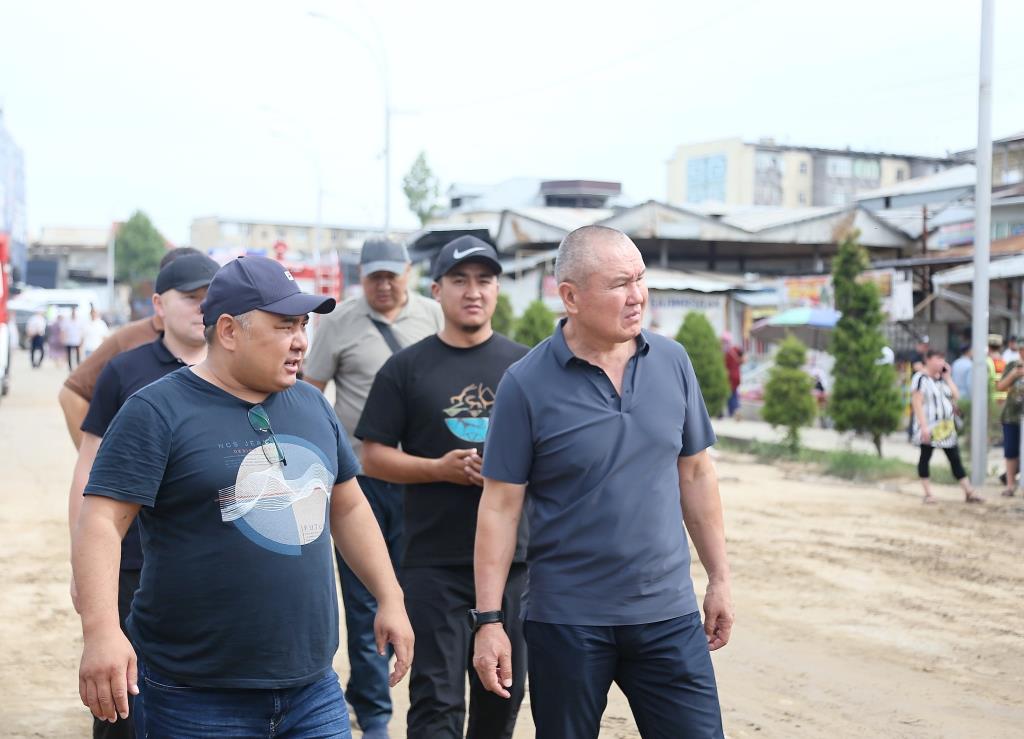 Шаар башчысы селдин кесепетинен жабыркаган борбордук базарда жүрүп жаткан тазалоо иштерин көрдү. Андан сырткары Ак-Буура дарыясынын жээгинде жайгашкан, үйлөрү суу астында калган “Манас-Ата” муниципалдык аймактык башкармалыгынын Жаңы-Маала көчөсүнүн жашоочуларынан кабар алды.