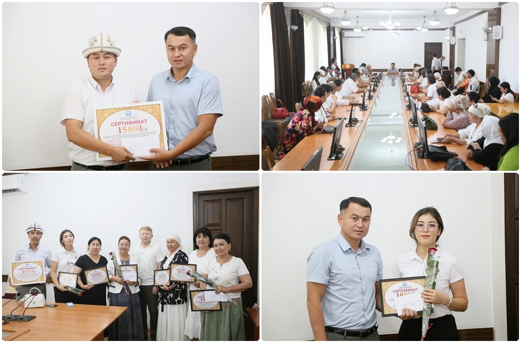 Салтанаттуу жыйындын алкагында, өткөрүлгөн үч айлыкта жогорку жоопкерчилик менен активдүү катышкан муниципалдык аймактык башкармалыктарга, мекеме-ишканаларга, көп кабаттуу үйлөргө “Мыкты муниципалдык башкармалык”, “Мыкты кварталдык комитет”, “Мыкты көп кабаттуу үй”, “Мыкты социалдык мекеме”, “Мыкты муниципалдык ишкана”, “Шаардын көрктөндүрүүсүнө көмөк көрсөткөн мыкты жеке менчик ишкана” наамдары боюнча сертификаттар менен акчалай сыйлыктар, ыраазычылык баракчалар тапшырылды.