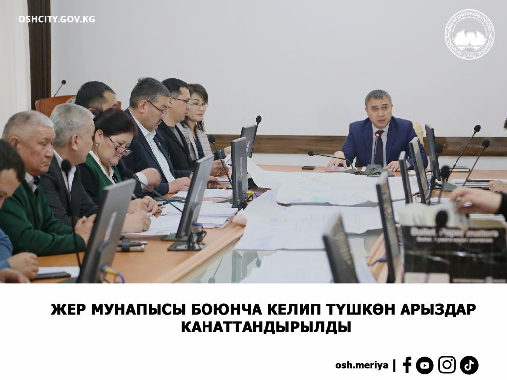 Бүгүн, Ош шаарынын мэринин орун басары Замир Юсуповдун төрагалыгы астында жер мунапысы боюнча түзүлгөн комиссиянын кезектеги отуруму өттү.