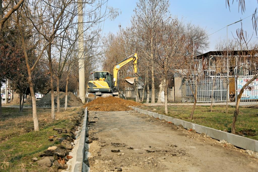По улице Исхака Раззакова в МТУ Манас-Ата началась работа по строительству тротуара.