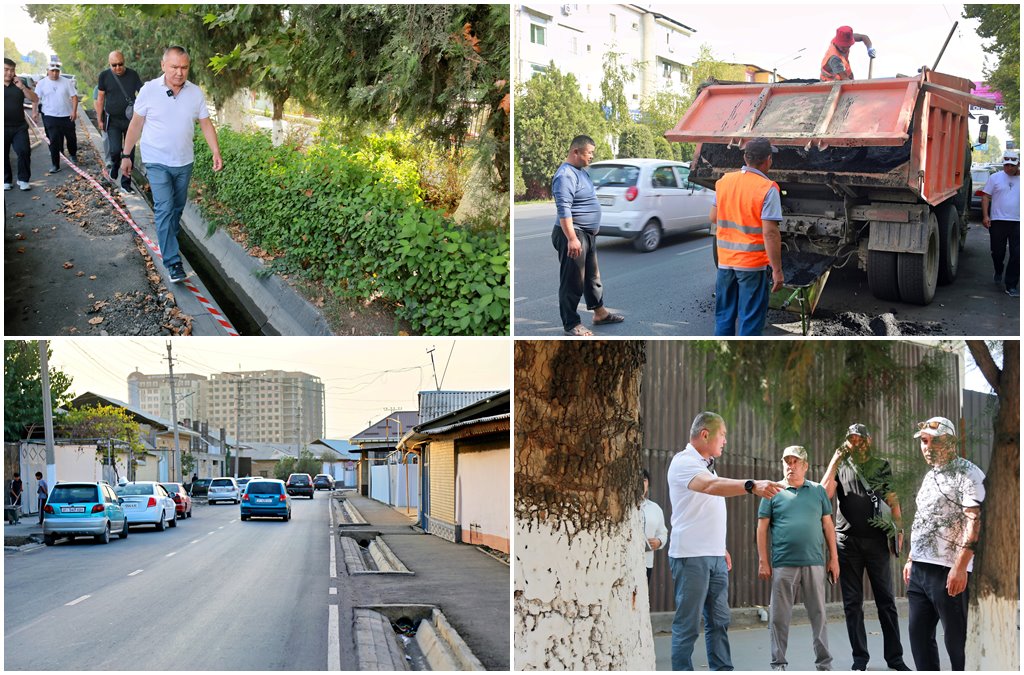 В рамках мероприятия градоначальник обратил внимание соответствующих служб на завершение работ по установке бордюров в тех местах, где это необходимо, а также поручил провести работу по реконструкции и открытию арычных сетей на участке от пересечения с улицей Навои до улицы Монуева.
