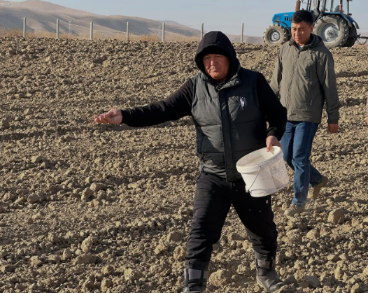 На долевых землях, находящихся в ведении территориального управления Кызыл-Кыштак мэрии города Ош, был произведён посев озимой пшеницы.