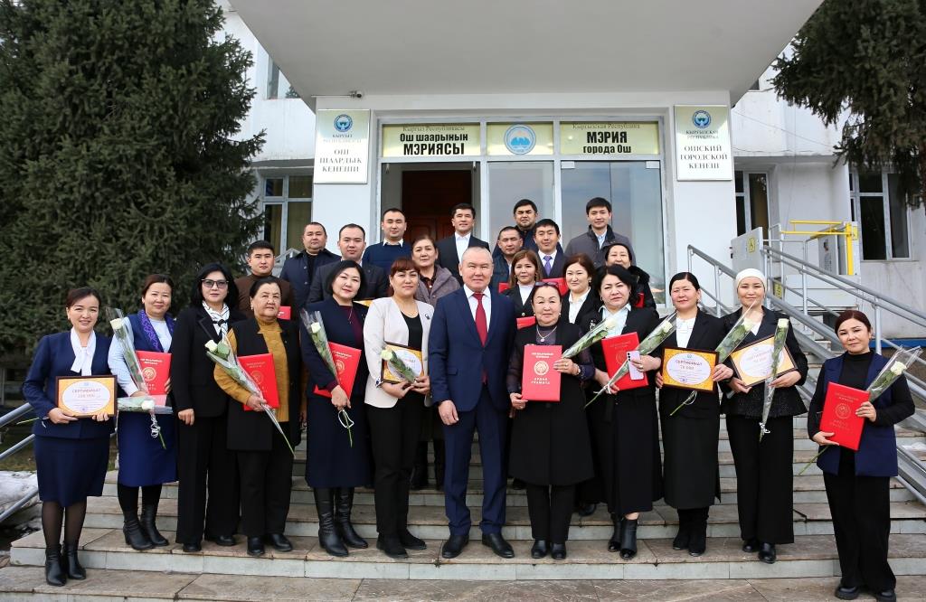 За значительный вклад в развитие социально-экономического и интеллектуального потенциала города Ош, высокие достижения в профессиональной деятельности, высокие показатели в 2024 году, добросовестный труд при исполнении служебных обязанностей, активность в общественно-политической, культурной жизни города, Почетными грамотами мэрии города Ош награждены работники аппарата мэрии города Ош, городских учреждений и предприятий.