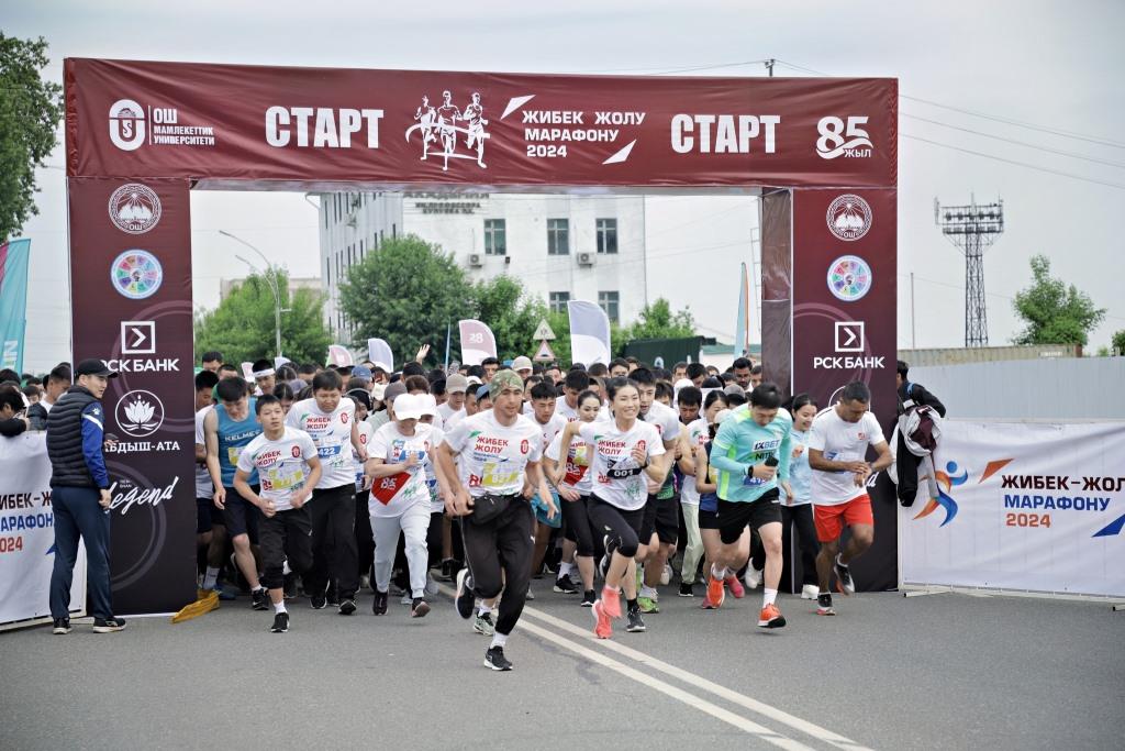 На центральной площади города Ош сегодня прошел массовый легкоатлетический забег «Марафон Шелковый путь 2024», посвященный 85-летию Ошкого государственного университета.