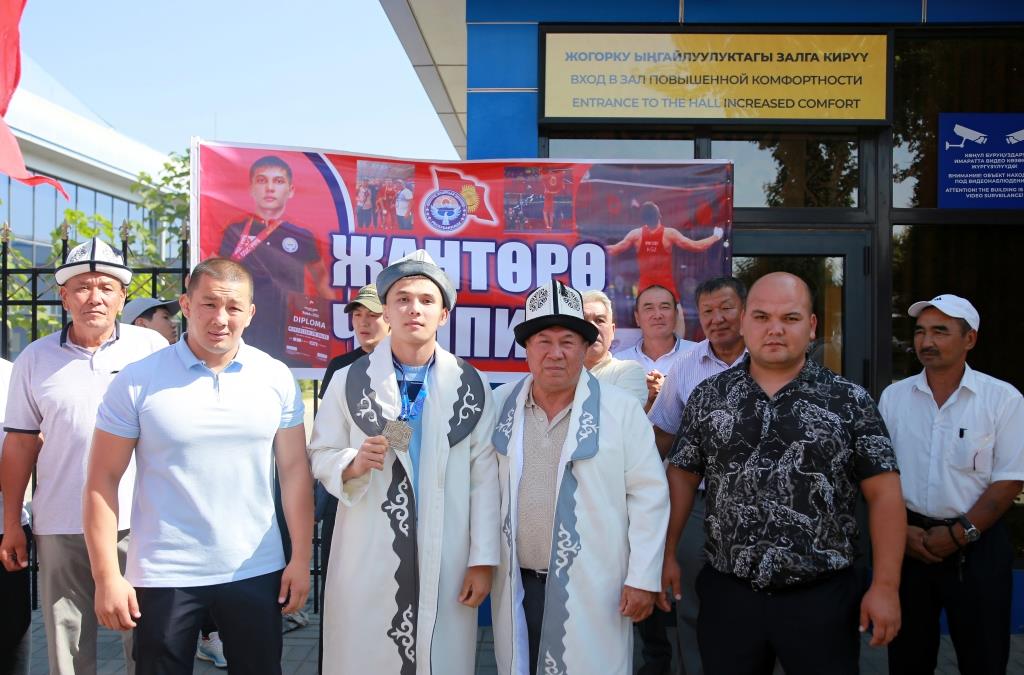 В Оше в торжественной обстановке встретили серебряного призера Чемпионата мира по греко-римской борьбе Жанторо Мирзалиева