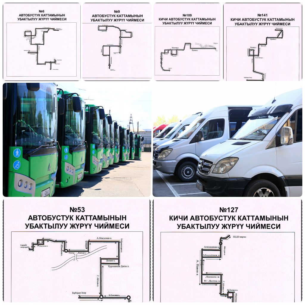 №109 микроавтобусный маршрут будет проведен от Центра обслуживания населения (ЦОН) по улице С.Касымбекова (через улицы С.Касымбекова – круговая развязка “Достук” – ул. Б.Осмонова) до нового муниципального рынка.